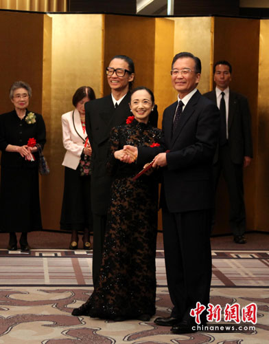 温家宝总理说,今天这个颁奖仪式非同寻常,中日邦交正常化走过了一场艰难曲折的道路,在这过程中,起重要作用的是人民和朝野的力量。你们才是中日关系发展的功臣,历史将记住你们,中日两国人民将记住你们,我代表中国政府和中国人民谨向你们表达崇高的敬意和深深的谢意。