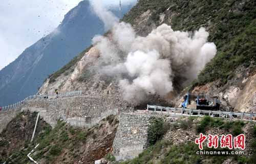 中新网汶川5月31日电(于海忠 刘忠俊)因山体垮塌中断的国道213线汶川段抢险工作正在紧张进行。该路段预计31日17时左右可实现通车。