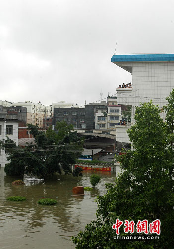 记者在来宾市实验中学看到,该校已成为一片湖泊。水深处约有1.6米,已经淹过成年男子肩膀。水中七零八落飘散着住户的生活用品,一楼居民已经全部撤离。消防官兵自早上8时许开始对被困师生进行救援,直至下午5时,该校1100名被困师生及家属全部撤至安全地带。学校内停电并且无法出行,影响了不少居民的正常生活。周边几家商铺围挡自家门口防止积水流进店内,用各种器皿向外倒水。