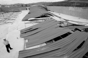 刘春强家百米之外,是一处新建厂房,大片的蓝色房顶倒塌在地上。老板吴俊介绍,厂房建好才有一个月,原本打算用作农机加工和存贮。可风雹过后,厂房价值6万元的、1780平方米的彩钢瓦被大风摧毁。此外,支撑彩钢瓦的三角钢架也扭曲变形,“只能当作废品卖。”吴俊说,这次风雹让他损失20多万元。