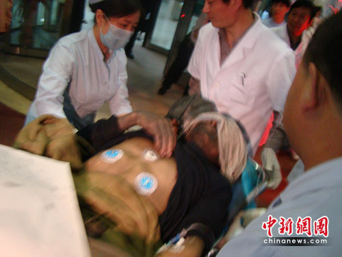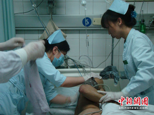 获救工人在接受治疗。(摄影/高增平)
