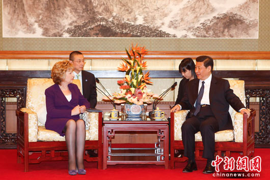 中新社北京6月13日电 (记者 周兆军)中国国家副主席习近平13日在钓鱼台国宾馆会见爱尔兰总统麦卡利斯。