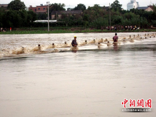 虽然被困人员距救援人员的岸边只有十多米,但石桥至岸边的小路早已被冲泻而下的急流隔开,消防战士跳入齐胸深的水中,几次欲通过石桥接近被困者,都被强大的水流冲到一边,根本无法到达近在眼前的石桥救人,而且整个桥面及栏杆都在水面下,一个不慎自身都会存在危险。
