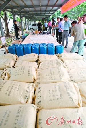 据警方介绍,早在1999年潘某斌就因为非法持有毒品麻黄素,被内蒙古警方抓获,并获刑10年。2003年被释放后来到广州,开始了更猖狂的贩毒。为了掩人耳目,潘某斌开起了化工门市部,租了整栋楼,里面都放着化工原料,
