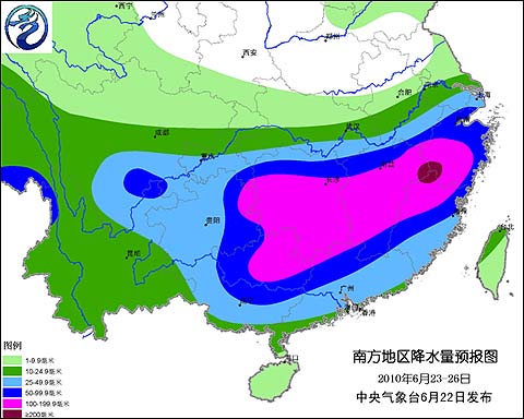 6月22日10时,中国气象局召开南方暴雨专题新闻发布会,会中谈到了南方已经出现的暴雨情况以及未来的天气发展。中国气象局应急减灾与公共服务司司长陈振林指出,23日至26日,江淮、江南、华南大部以及西南地区东部等地又将出现一次强降雨过程。湖南、江西、福建、广西等地的汛情将进一步发展,建议各地、各有关部门及时采取措施,加强防范区域性洪涝灾害和严重次生灾害。