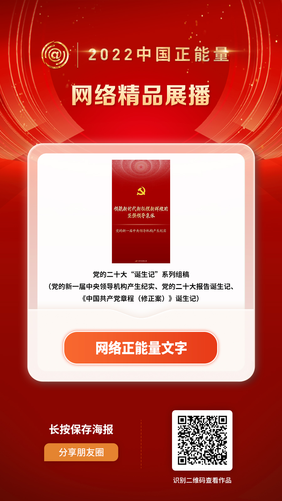 | 1 | 党的二十大“诞生记”系列组稿(党的新一届中央领导机构产生纪实、党的二十大报告诞生记、《中国共产党章程(修正案)》诞生记)![]() | 《党的二十大“诞生记”系列组稿(党的新一届中央领导机构产生纪实、党的二十大报告诞生记、〈中国共产党章程(修正案)〉诞生记)》主创团队 | 新华社 | 新华社 |