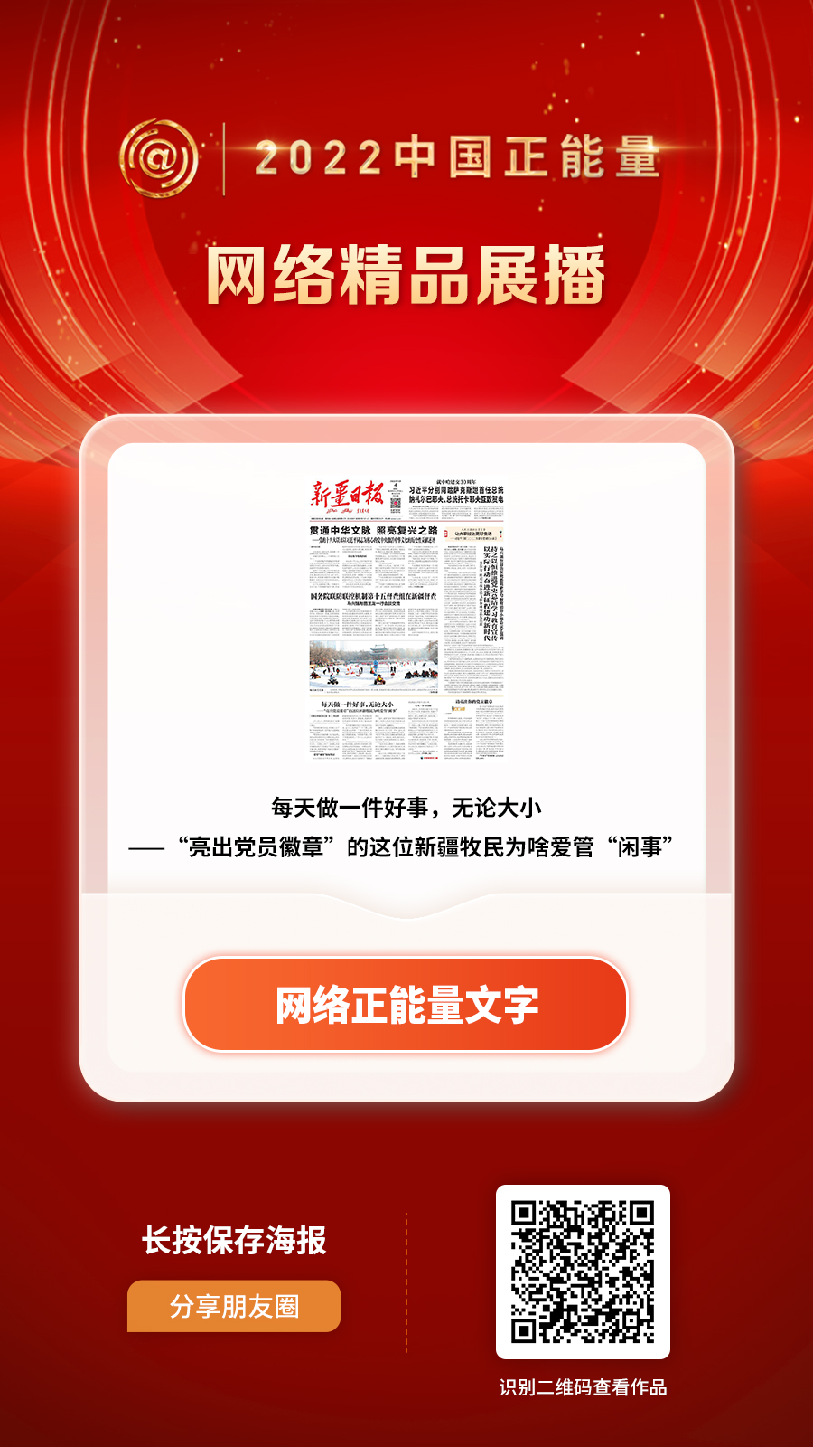 | 26 | 每天做一件好事,无论大小——“亮出党员徽章”的这位新疆牧民为啥爱管“闲事”![]() | 任江、阿比拜、赵卫斌、袁蕾、钟秀玲 | 新疆日报社 | 新疆维吾尔自治区党委网信办 |