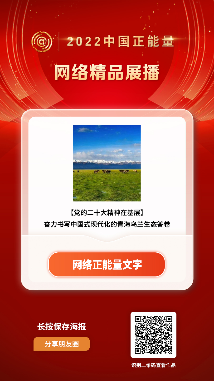 | 33 | 【党的二十大精神在基层】奋力书写中国式现代化的青海乌兰生态答卷![]() | 马晓龙、周晶 | 中共乌兰县委 | 青海省委网信办 |