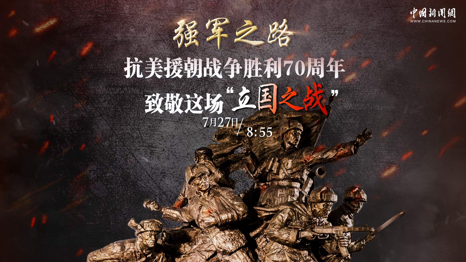 70多年前,中国人民志愿军雄赳赳、气昂昂,跨过鸭绿江,同朝鲜人民和军队一道,历经两年零九个月艰苦卓绝的浴血奋战,打败了以美国为首的侵略军,赢得了震撼世界的伟大胜利。 [详细]