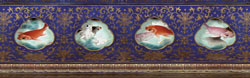 清乾隆磁胎洋彩青地金花鱼游春水瓶(局部展开图)