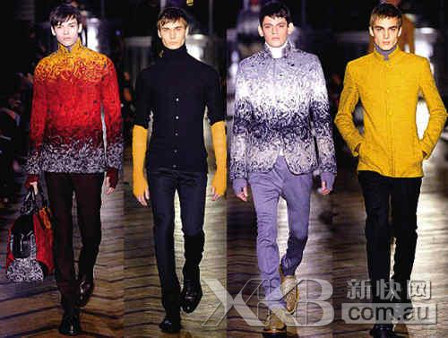 以往的男装,但凡产生新观念总会引起一番热烈的讨论和争吵,而如今南辕北辙的男装造型却可等量齐观,没有革命冲突,大家和平共处。这种现象可以被认为是男装设计已走入了成熟期。今年秋天的男人在这个世界上的集体面貌呈现出一种难得的丰富与和谐。大可以把这一季的男装设计命名为“阴阳”的一季,既突显了矛盾,又不乏互相的包容。