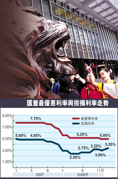 工银亚洲董事暨副总经理黄远辉表示,估计汇丰此次行动,主要想追回早前下调最优惠利率25点子的息差。他指,业界对经济展望仍不乐观,全球潜在的通缩风险大增,加上不排除美国会于本月16日再次减息,因此料以上各种因素,会对个别银行的按息调整构成一定压力。他认为,由于整体投资市场于金融海啸打击下崩溃,按揭业务仍是各家必争之地,料即使银行上调按息,幅度也不会太大。