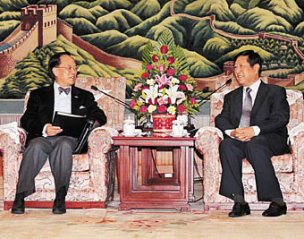 香港特首曾荫权(左)17日到北京述职,拜会国家发展和改革委员会主任张平。(图片来源:文汇报)