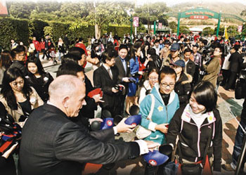 十二月二十二日,首个深圳外省居民定点香港团抵港,并随即到迪斯尼乐园。当局稍后计划进一步放宽办证手续,预计圣诞假期后会有第二团来港。图为圣诞前夕,香港闹市购物区迎來各地游人络绎不绝。 中新社发 张勤 摄