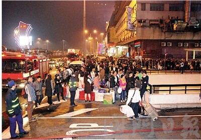 逾四百住客疏散到街上暂避。(图片来源:澳门日报)