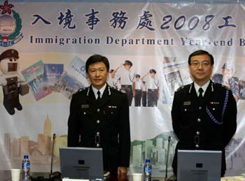 白韫六19日偕副处长赵伟佳出席入境处年结记者招待会。他表示,处方去年收到6744宗内地人才计划申请,较2007年的6075宗多11%,但第四季跌15%。投资移民方面,去年申请数字为2798宗,较2007年多56%。不过,全年申请宗数增加,第四季数字与前年同期相若,即有放缓迹象。