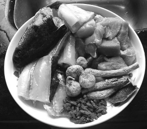 制法:将生鱼洗净,放入锅用油煎约7分钟,再洗干净备用。将猪肉放入瓦罐用开水焯约5分钟。