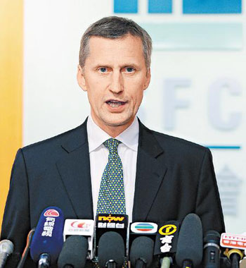 证监会行政总裁韦奕礼22日傍晚临时会见传媒,公布该会与新鸿基投资服务达成协议的消息。他指出,这次处理方法所达致的成果,符合投资者的最佳利益,对这宗个案所达致的结果感到相当满意。