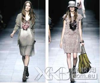无论在秀场上还是日常生活里,皱褶从来不缺少出场机会。更多的时候,它不是以高调的姿态出现的,而且默默地烘托,低调地美丽。少女最喜欢皱褶裙,因为它就像微风轻拂湖面出现的波纹一样,温柔地触碰着皮肤。看看Celine 2009春夏女装发布会上那些皱褶连衣裙吧,一系列的蓝色或者绿色的渐变色长裙已经足够让女人疯狂了,再加上浑身上下似是不经意而为的皱褶,还有以皱褶衣料拧成的腰带和围巾——穿着这样的一袭衣裙,最适合在旅游城市里慵懒地游荡了。
