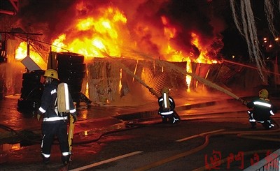 中新网3月10日电 《澳门日报》今日在头条刊发报道称,澳门纵火案频生,氹仔奥林匹克大马路一露天废旧轮胎回收场9日清晨疑被人纵火,存放场内近百条轮胎着火焚烧,火势猛烈。烧轮胎产生的有毒黑烟席卷半空,火舌乱窜,烟团滚滚,远至路氹城连贯公路也可看见,状甚吓人。