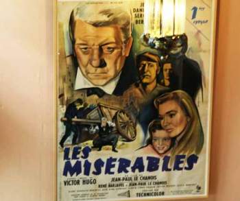 取了票进门,沿阶而上,我看到墙壁上有多幅跟《悲惨世界》相关的展览图片。参观从二楼的常设展厅开始。由前厅而至最后的卧室,从画像上的摇篮,直到作家辞世前用过的最后一张床,有限的空间里浓缩展示了作者极其丰富而不平凡的一生。《悲惨世界》的临时展览也有部分内容贯穿期间,连绵不断的玻璃橱窗里依序陈列着:与该著作大致同期的欧洲其它部分同类文学创作情况(俄国的陀思妥耶夫斯基、英国的狄更斯、德国的格林兄弟等)、《悲》的部分业已泛黄的珍贵手稿、见证其创作与出版的诸多往来手书邮件等等,内容丰富而翔实。
