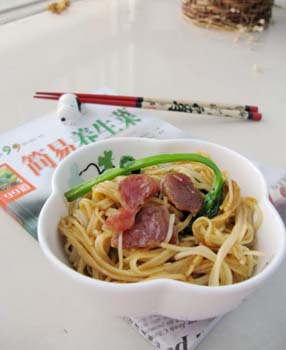 一、材料:香肠、青菜、油、盐、蚝油、生抽、老抽、芝麻酱、芝麻油