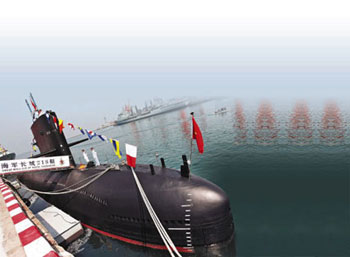 各国海军代表团参观的3艘舰艇都是近几年才服役中国海军的,分别是“长城218”号常规动力潜艇(039/039A常规潜艇)、“温州”号导弹护卫舰以及“和平方舟”号医院船。海军副司令员顾文根表示,这3艘舰艇都是中国自己设计制造的,代表了中国海军装备的最新水平。