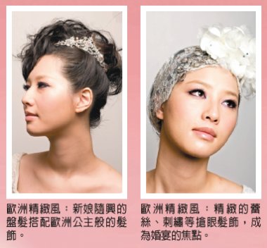 今年时尚界有许多饰品设计师出头,在秀场上常见搭配夸张饰品的造型。怕麻烦的新娘,在发型上可以尽量简单,只要更换不同的华丽发饰,就可以变出多样风格,尤其适合拍婚纱照或宴客中场短时间换装时使用。