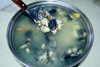点菜率极高的还有蒜头蛤仔乌骨鸡,用的是辣度很够、质量佳的伸港蒜头,汤锅里可看到一大把蒜头“非常粗本”,药书中即记载乌骨鸡性平、补肝肾、益气血、退虚热的功效,再加上蒜头,老板说几碗鸡汤下肚,肚子即骨碌碌的叫,客人都认为这鸡汤有预防感冒、有助肠胃蠕动,所以是热门口味。