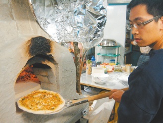 网络昵称“蜜鲁”的谢汶达,店名就叫“蜜鲁手工窑烤”,老家在彰化市南瑶宫对面,开意大利餐厅时学会做披萨,花10万元自己做了座窑。他说,用龙眼木来烧味道最特殊,窑内摄氏控制在200度以上,窑内同时只烤两片,也因此更能专注火候控制。