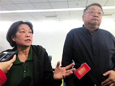 方子哥夫妇接受采访。昨天,因购房被骗,方子哥之子起诉我爱我家索赔案开庭。新京报记者 刘洋 摄