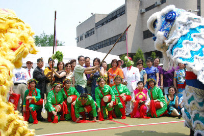上千名民众不畏高温到场参与。繁荣华埠总会创会会长田士锐、华裔选民联盟理事长黄绮云、纽约州参议员史葛静代表张笑瑛、华策会人瑞中心主任伍宝玲、退伍军人会副会长王咪咪以及李瑞生、雷光达等小区人士出席。