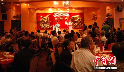 唐人街枫城大酒店当晚汇聚了近三百名多伦多社会各界民众,其中主要是琼籍乡亲,他们大多携家出动,不少还是老少三代。