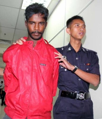 8月17日上午,来自彭亨州兰樟的巴拉马斯哇(32岁)身材瘦削,穿着一件红色外套和一条短裤在新山第3地方法庭面控,承认犯下强奸罪。