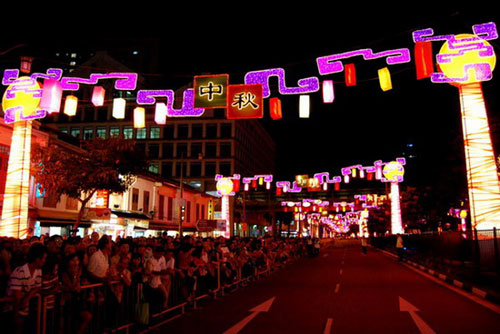 12日晚,新加坡的“牛车水”(新加坡的唐人街)格外热闹,到处张灯结彩、人头攒动,一派节庆气氛。由当地华人社团组织的“2010年牛车水中秋节亮灯仪式与开幕礼”今晚在这里隆重举行,这也意味着新加坡为期一个月的华人庆中秋活动就此拉开了序幕。新加坡共和国总统纳丹亲自上台启动亮灯仪式,使整个现场气氛达到了高潮。