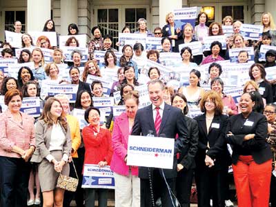 中新网9月14日电 据美国《星岛日报》报道,9月14日纽约州初选临近,今年选举中以检察长一职的选情最为激烈,据Siena研究所11日所公布的民调,目前民主党两位主要参选人史树德(Eric Schneiderman)仅以2%领先韦嘉莲(Kathleen Rice),因此鹿死谁手还是未知之数。两人各自都积极在华人社区打选战,至12日仍在作最后冲刺。