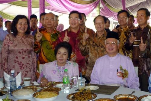 中新网9月19日电 据马来西亚《星洲日报》报道,马来西亚首相纳吉18日回到选区北根举办开斋节门户开放活动,华总会长方天兴率领彭亨华人社团联合会及彭亨中华工商会众领袖一起出席,并赠送月饼予首相,象征月圆、人圆、全民团结!