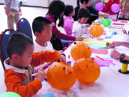 18日举办的“中加千里共婵娟”贺中秋活动,节目包括:民族舞蹈、中乐演奏、猜灯谜及儿童手工艺等。为了让年轻一代分享中国传统节日的热闹气氛及乐趣,18日出席活动的学生及儿童,即场报名参加装饰灯笼,文化中心提供一个未经装饰的灯笼及基本物料,完成后色彩缤纷的灯笼,挂在现场作为庆祝中秋。