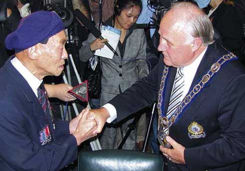 道歉过程以英语进行,以普通话实时传译。赖特宣读完毕,全体站立拍掌逾一分钟,以示庆祝及支持。他由女儿从本拿比载到二埠、特地参加二埠道歉仪式的87岁退役华裔加国空军军人黄金焕,更激动地上前与赖特握手说:“身为加拿大人,我是110%骄傲,我今天以身为华人而自豪。” (冯瑞熊 崔源明)