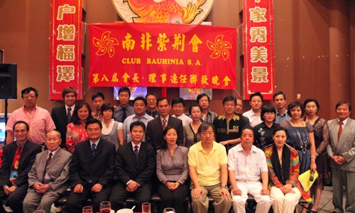 中新网10月13日电 据《非洲时报》报道,10月9日晚,南非紫荆会第八届会长、理事会员联欢晚会在约堡富丽华餐厅举行,中国驻南非大使馆领事参赞陆清江女士、一秘周勤,驻约堡总领事馆陈泳副总领事、南非华人社团代表,连任紫荆会第八届会长岑风华和全体紫荆会会员参加了当天的联欢晚会。(梁铨)