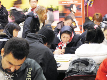 中新网11月26日电 据加拿大《明报》报道,加拿大中侨互助会24日举行圣诞前夕零售业招聘会,多家大型零售公司需要在圣诞前招聘大量人手,单是The Bay已预料需要在12月中前聘请100名短期工,招聘会吸引了逾千名来自不同族裔的市民参加,其中有不少华人面孔。