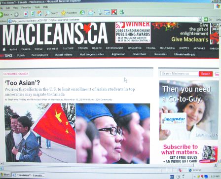 邹至蕙2日向明报称,《麦克琳》杂志发表的文章将亚裔加人“定型”,将之视为外国人,令读者读后感到亚裔人抢走白人读大学的机会,会引致白人与亚裔人敌对的局面。