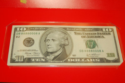 这是财政部印钞局首次发行带有十美元纸币的吉利钱,这些十美元纸币均属2003年印刷的未流通新币。