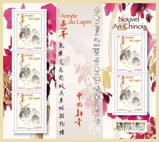 该“兔票”由旅法华人艺术家李中耀创作,这也是他继法国的“鸡票”、“狗票”、“猪票”、“牛票”和“虎票”之后,第6次获得生肖邮票的创作权。“兔票”的首发仪式将于2011年1月14日和15日在巴黎第9区集邮商店的“墨厅”(LE CARRE D'ENCRE,3 BIS RUE DES MATHURINS 75009 PARIS)举行。法国邮局将邀请李中耀为集邮爱好者签名售票。届时,法国邮局还将同时举办李中耀水墨画展。1月17日起,该邮票将正式在全法各地邮局发行。