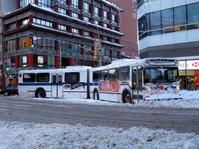 警方表示,过去市府在暴风雪来袭时,会加派铲雪车在主要干道不断进行道路铲雪工作,然而这次暴风雪来的又急又快,华埠坚尼路、包厘街和曼哈顿大桥罕见地看不到铲雪车清扫,导致27日上午在一辆加长公交车在坚尼路夹中央街口打滑,车身卡在积雪之中动弹不得,造成坚尼路双向车辆必须绕道而行、险象环生;另一辆陷在雪堆之中的巴士,索性停在坚尼路与包厘街口,直至下午才顺利脱困离开。