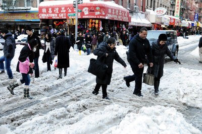 中新网12月29日电 据美国《世界日报》报道,纽约大风雪过后的第二天,得益于气温回升,积雪开始融化,曼哈顿华埠的商业秩序渐渐恢复。不过雪后的泥泞,也令华裔民众苦不堪言,在街头行走时一边要留心鞋子的清洁,一边慎防滑倒受伤。