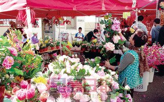 花摊上的鲜花,把春节渲染得淋漓尽致。(美国《星岛日报》/黄伟江 摄)