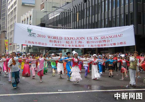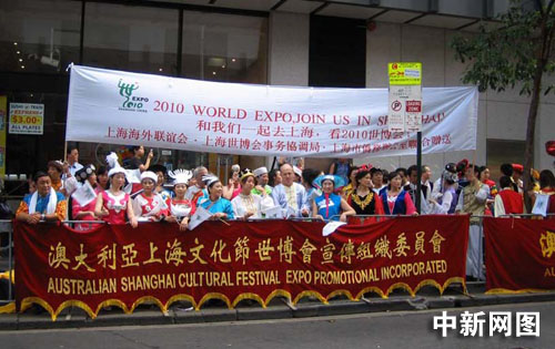 中新网3月1日电 近日,澳洲上海同乡会和澳大利亚上海世博会宣传组委会共同组织的宣传世博游行方阵,在悉尼春节大巡游队伍中格外引人注目。以上海同乡会艺术团为主体的宣传世博会方阵,身着中国各少数民族的艳丽服装,佩戴着精致的世博会纪念章,踏着整齐的舞步,在悉尼的主要大街上引起人们的注目。引导游行方阵的是两名身穿鲜艳中国民族服装的旗手,打着有着显著的世博会标志的大旗,旗上用中英文写着:“和我们一起去上海,看2010世博会!2010 EXPO,JOIN US IN SHANGHAI!”。悉尼新春游行中的宣传世博方阵,标志着2010上海世博会的宣传活动在海外的主流社会中首次登台亮相。