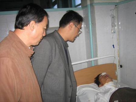 使馆临时代办凌军及商务处、领事部负责人12日前往医院探望伤员。凌首先对其表示慰问,并转达外交部、商务部和中建总公司领导对他们的亲切问候,强调驻外机构一直重视海外中国公民的生命安全,努力做好领事保护工作,积极贯彻外交为民的宗旨,希望受伤人员安心治疗,尽快恢复健康。