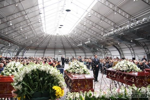 追思会的最后阶段,所有亲友和来宾陆续上前,向遗体告别并进献献花,会场内响起了歌曲《回家》。下午一点,众人目送灵柩离场。五具灵柩被运送前往麦夸里墓园。